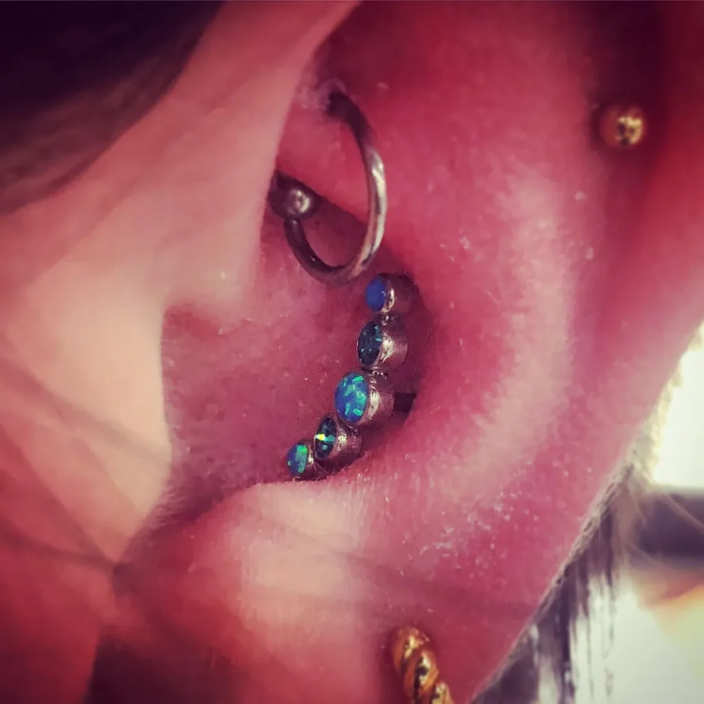Robert is the kind of guy that doesn’t feel comfortable writing his own bio, so his lovely wife is doing so for him. Robert was born and raised in NC and spent most of his time in the Triangle. He has 25 years experience in the piercing industry and spent 20 of those years at the beloved Glenn’s Tattoo Service in Carrboro. He is well known for his expertise in many arenas (everything from bicycles, watches, mending, wood working, motorcycles, darts, literature, selvedge denim, being an amazing dad of two, and having a healthy debate), his amazing story telling and stage presence (has spent many years gracing the stages of The Monti and LUEWWD), and his progressive ideals <– this one I’d like to expound upon more. Robert has been written about in blogs for his amazing ability to view the world through a lens of equity and enact this ethos on everyone that graces his chair. He teaches young girls about body autonomy when they are getting their ears pierced and he empowers folx in all walks of life to be better versions of themselves. I might be a bit biased…but I’m certainly not the only one.