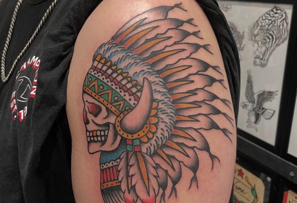 Bold, timeless American traditional tattoos featuring strong linework, solid color, and classic imagery designed to age clean and stay recognizable for life.